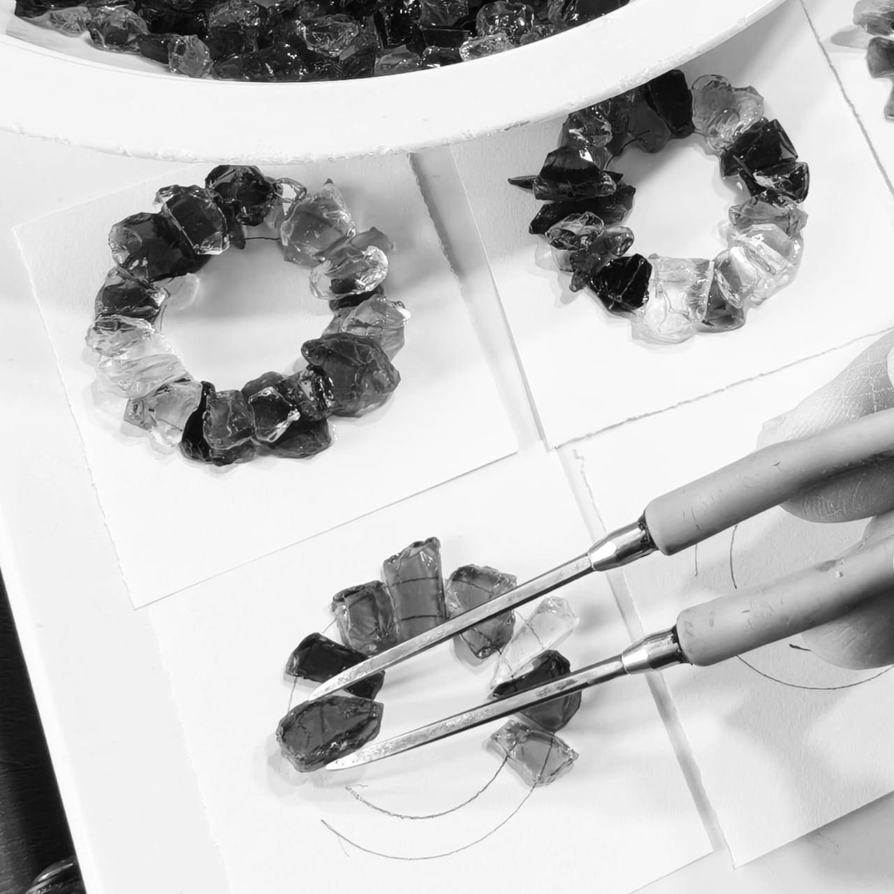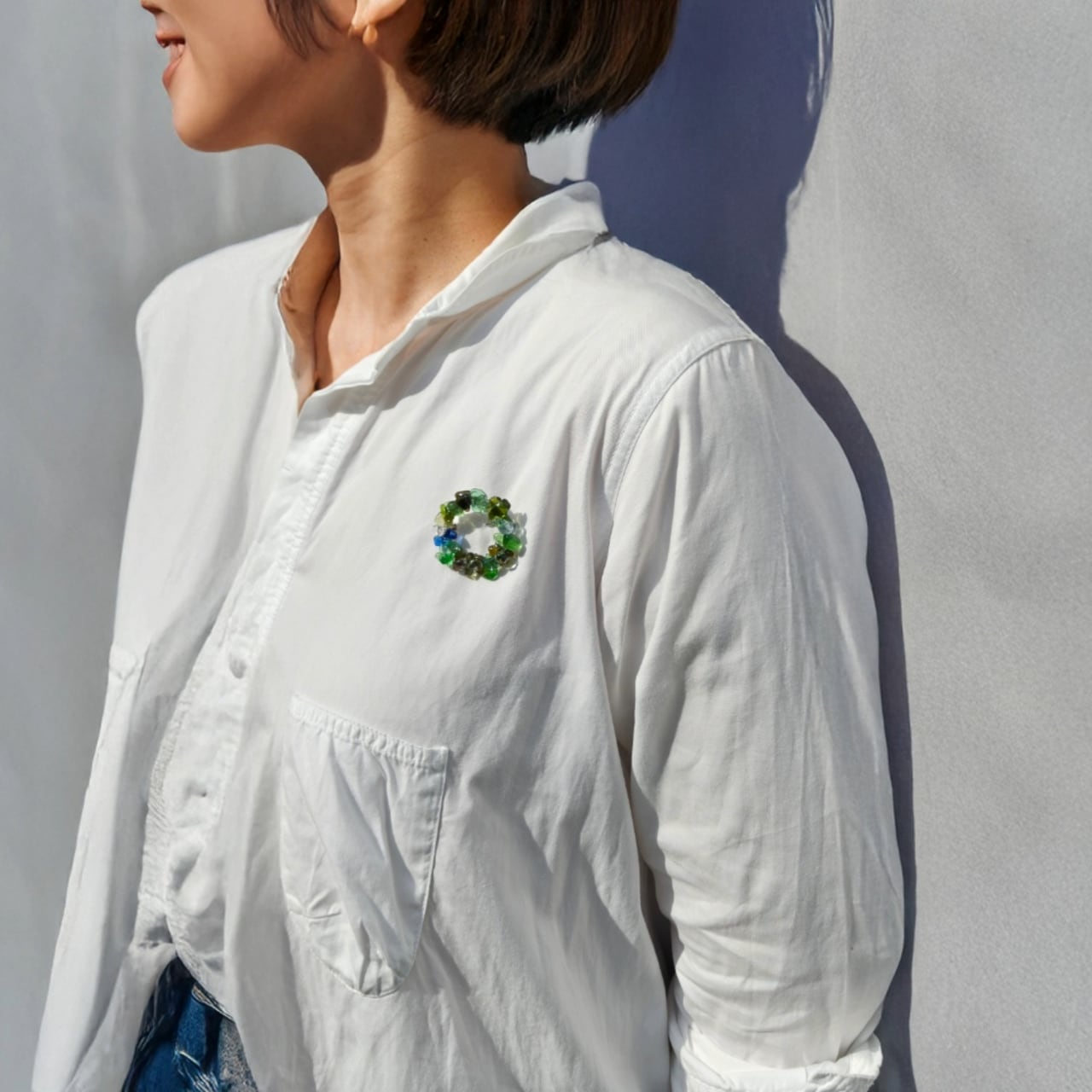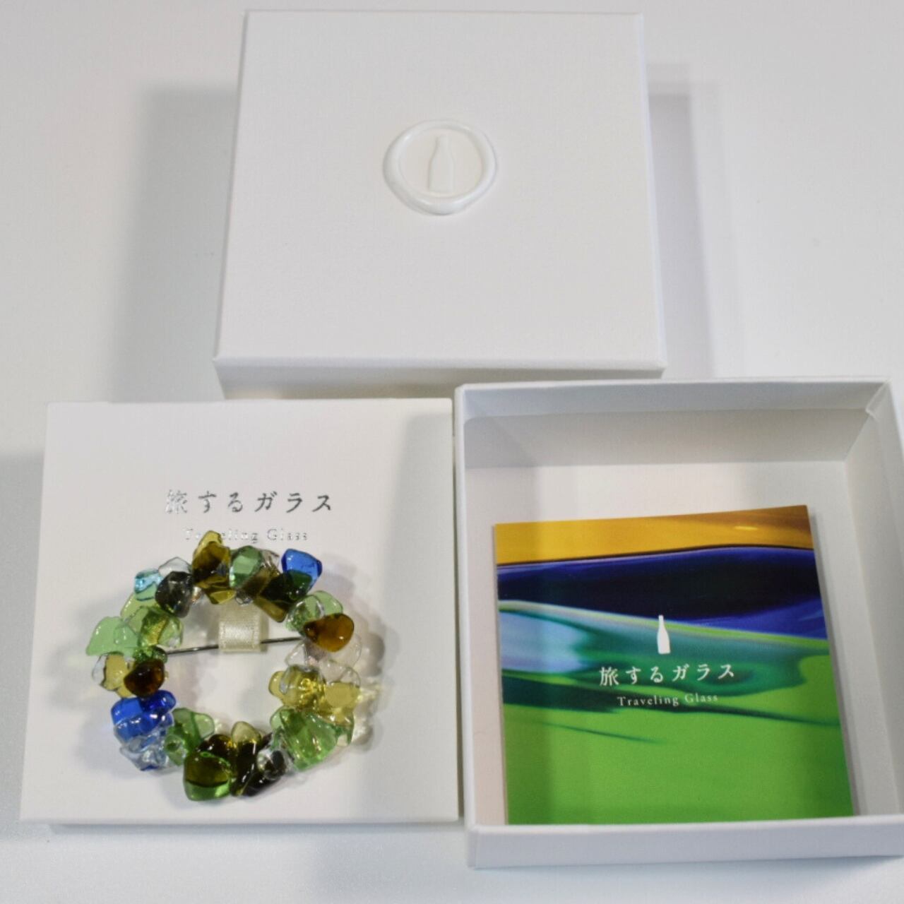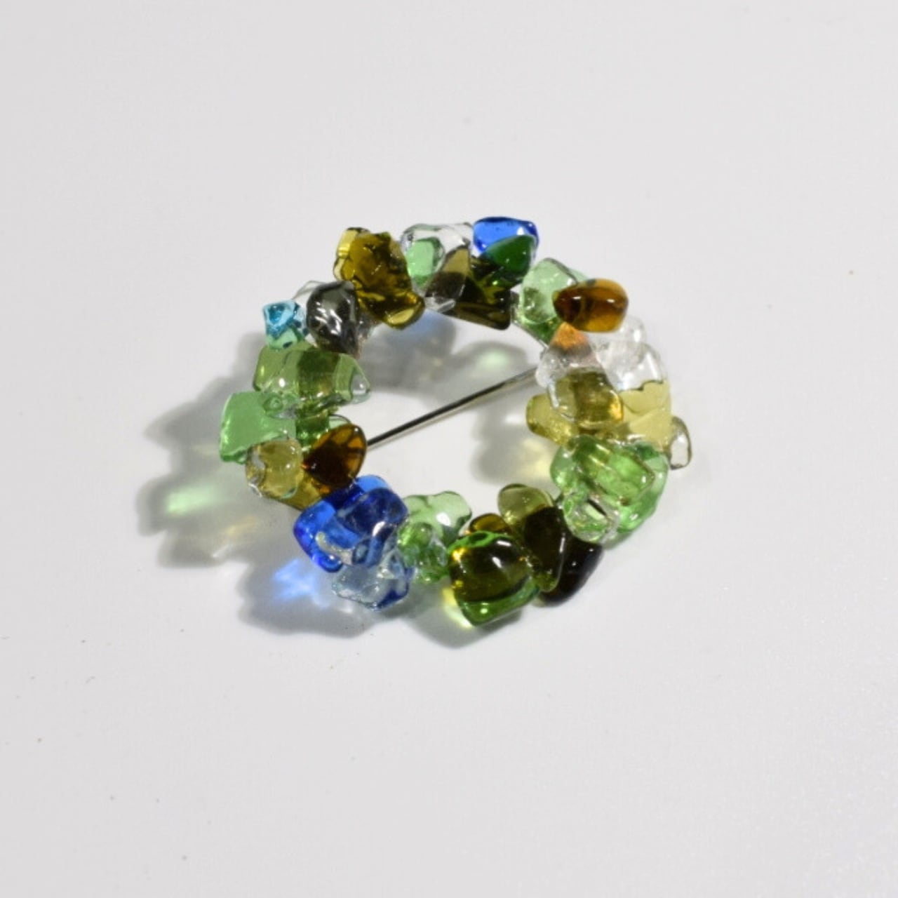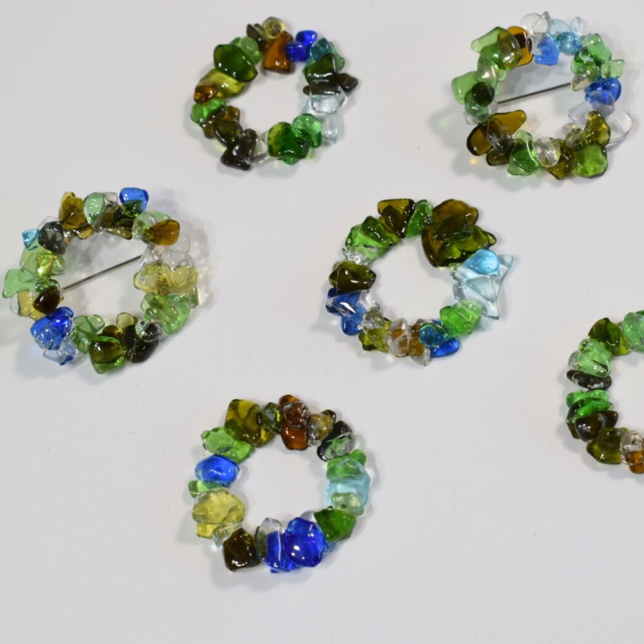 めぐるガラスを丁寧に重ねて生まれたブローチ「rin」。