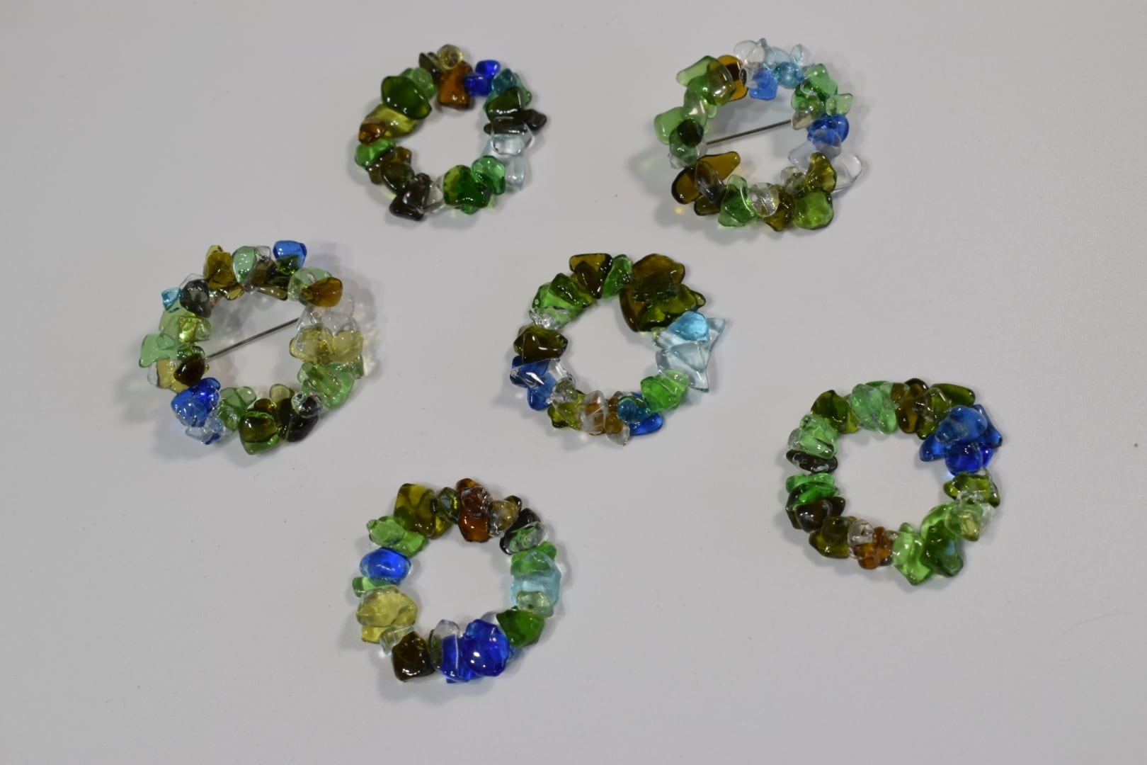 めぐるガラスを丁寧に重ねて生まれたブローチ「りん」。