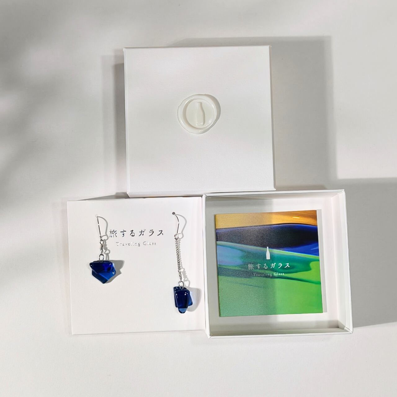 「旅するガラス」のロゴをエンボス加工でさりげなくあしらった上品な仕立てです。