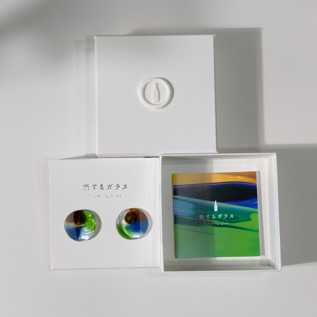 「旅するガラス」のロゴをエンボス加工でさりげなくあしらった