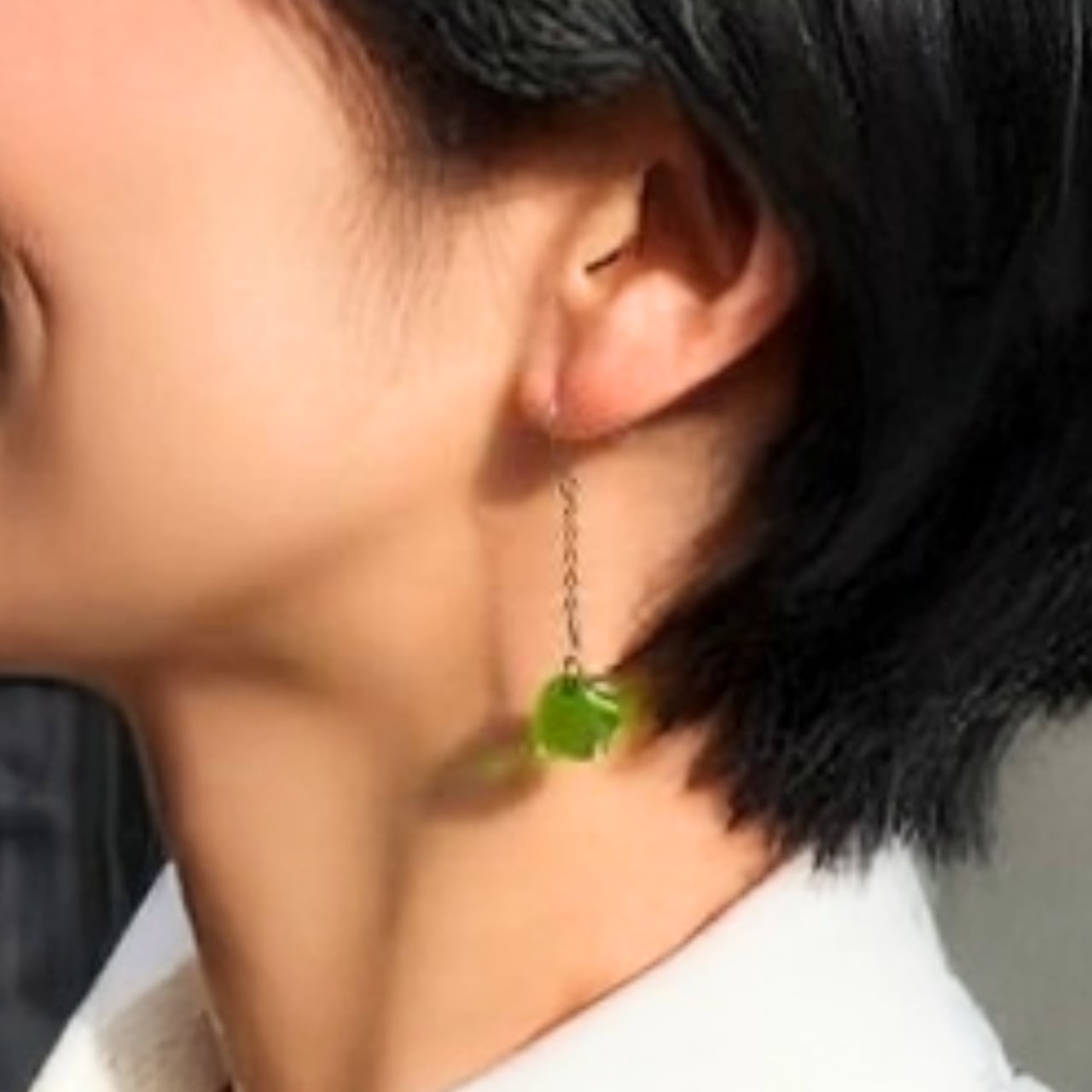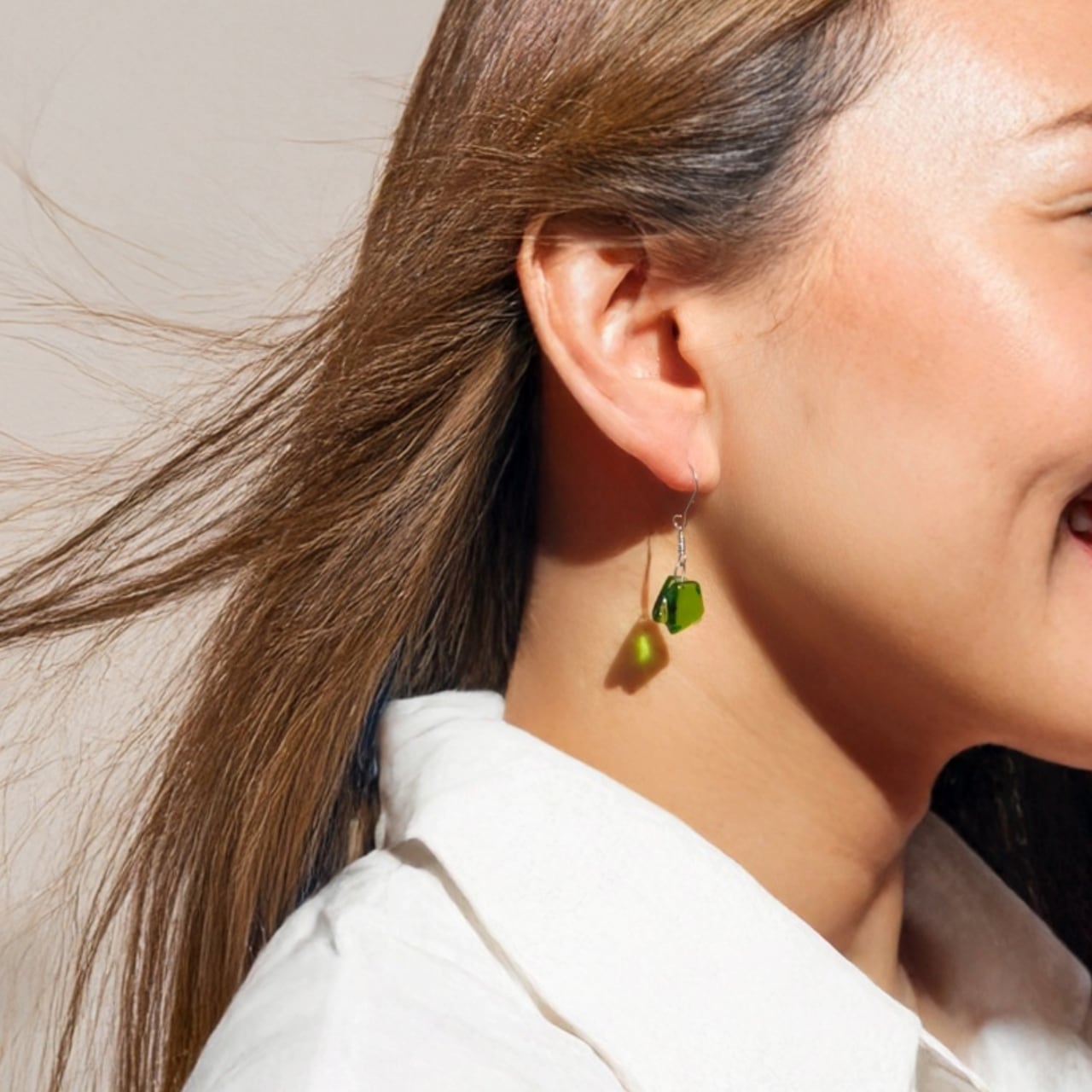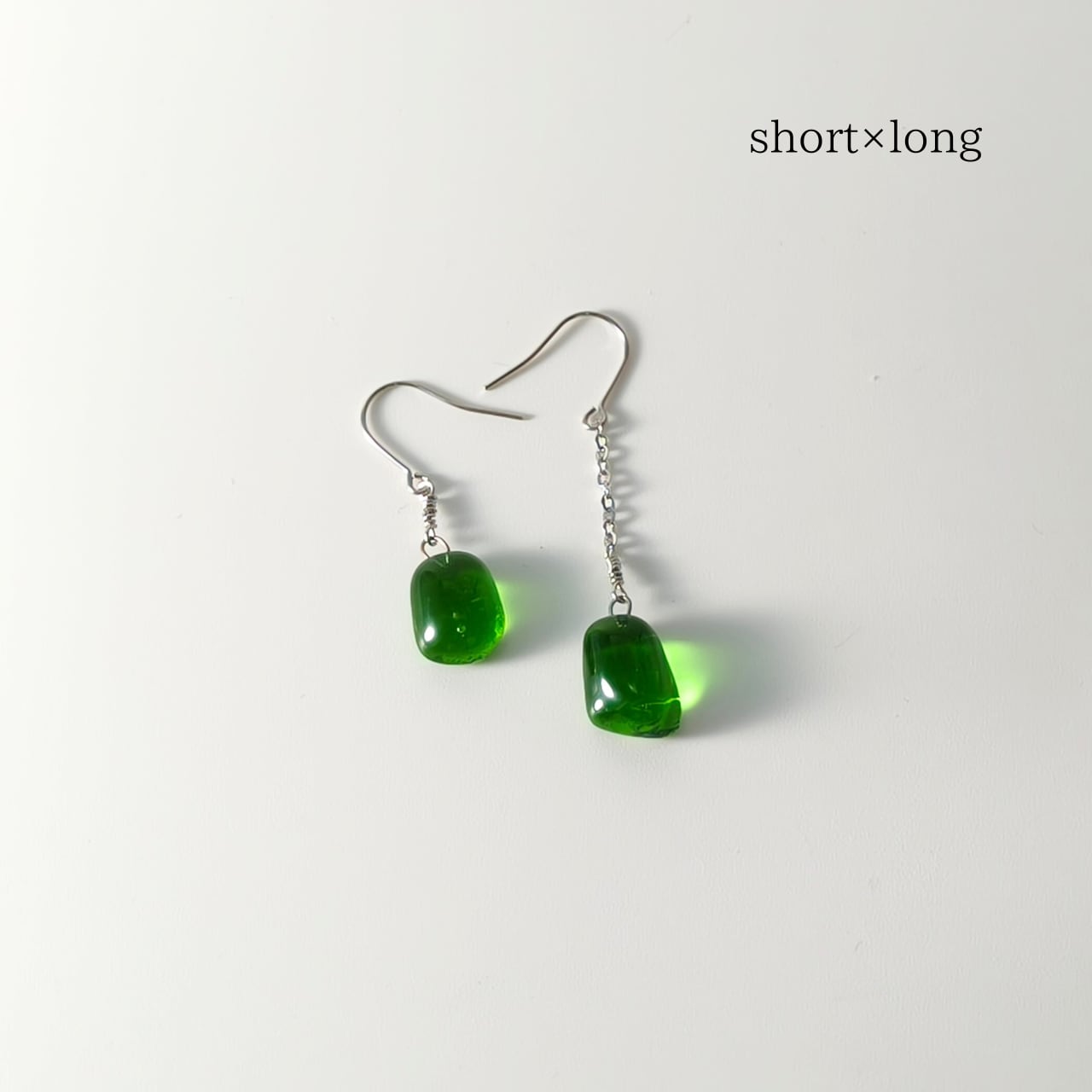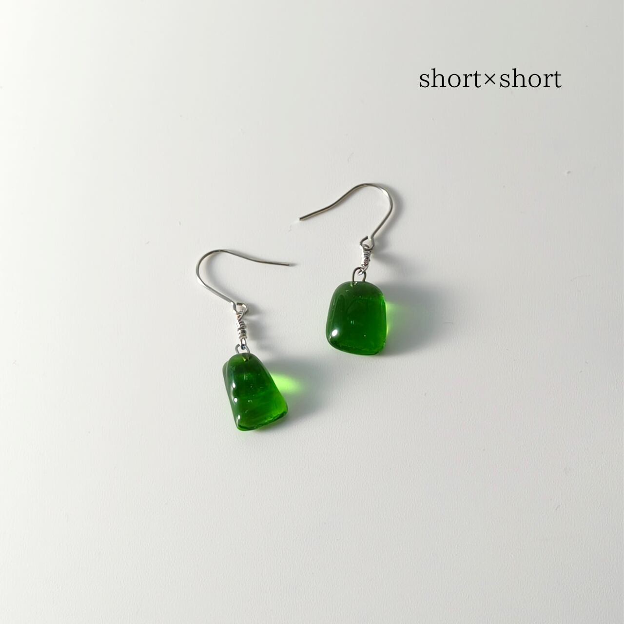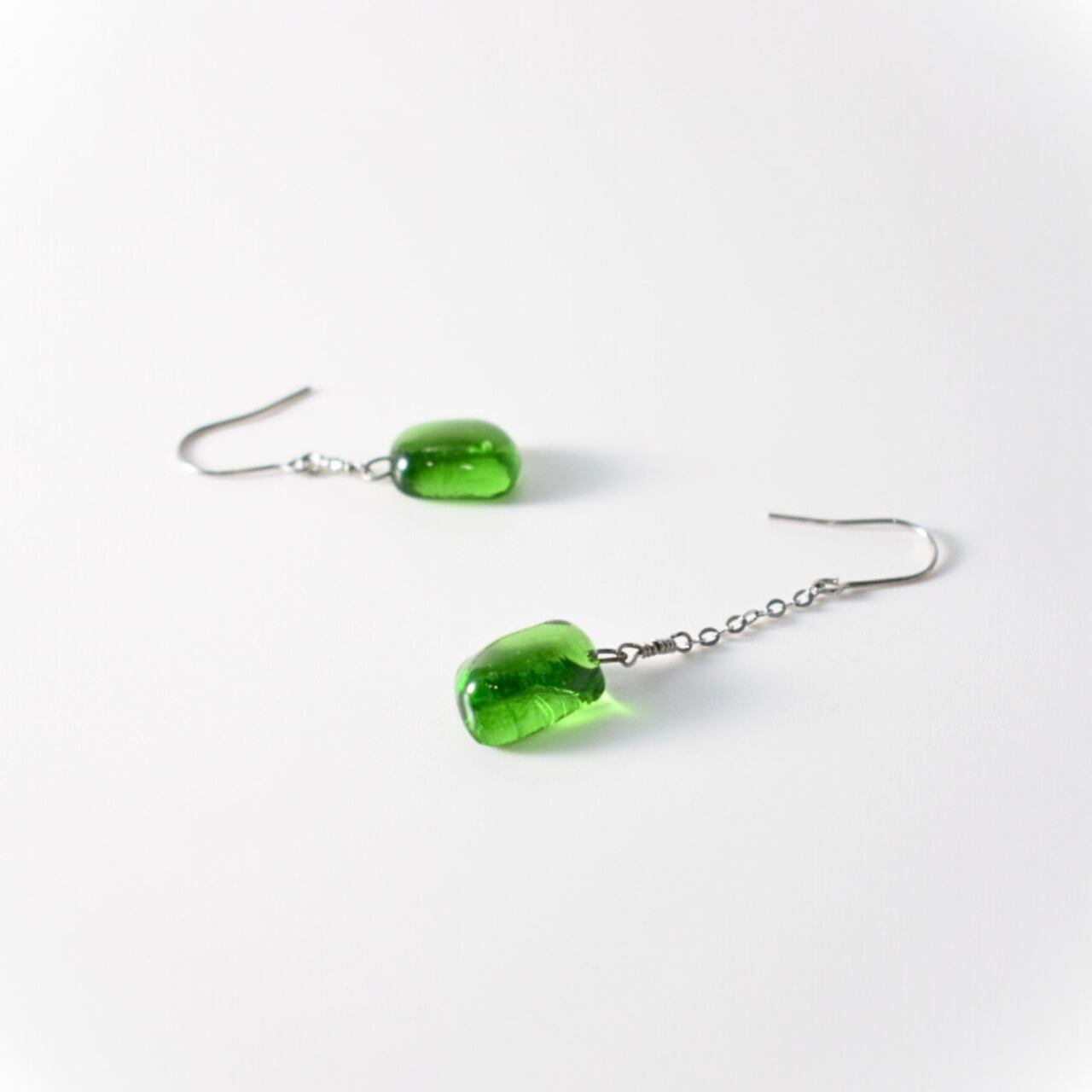 この〈翠〉のガラスを、耳元でそっと揺れるピアスへと仕立てました。