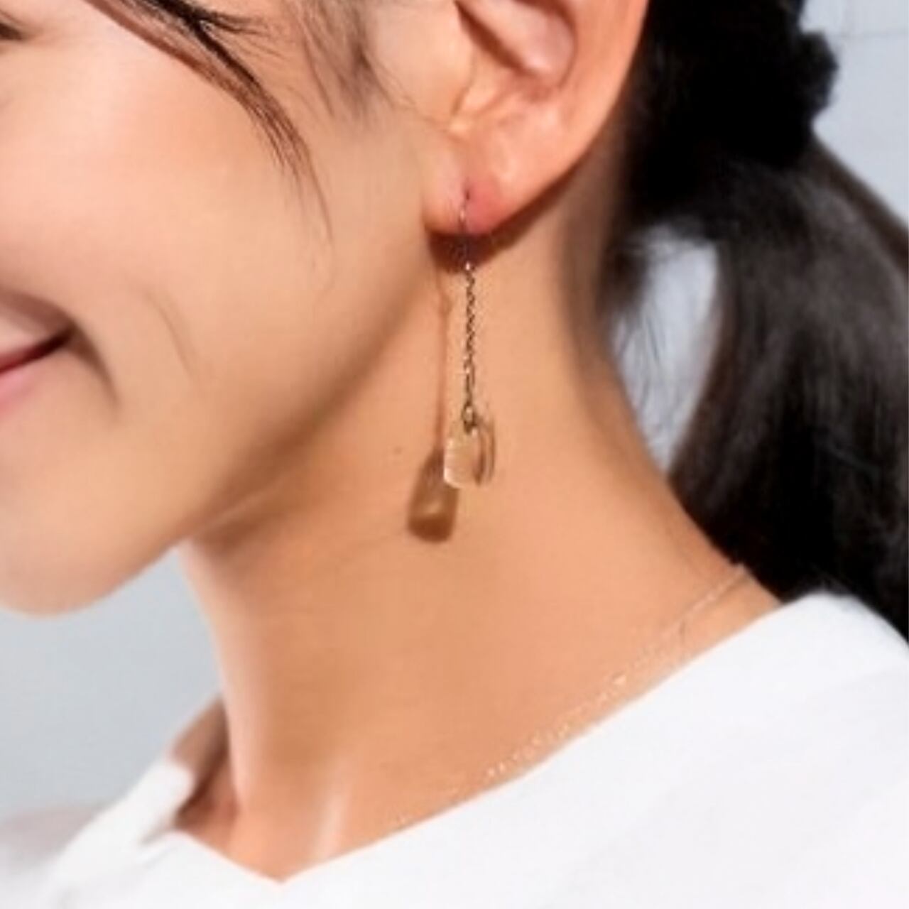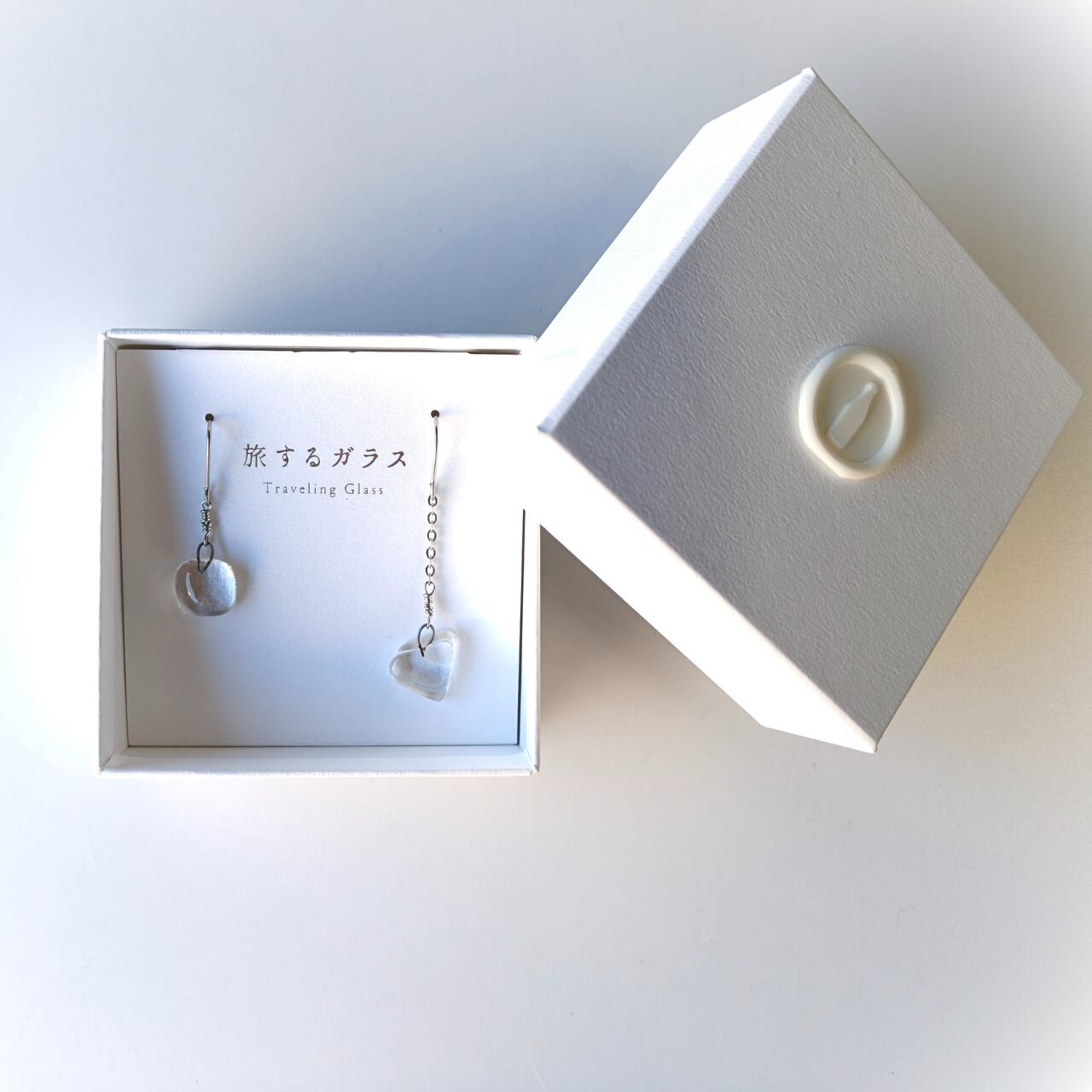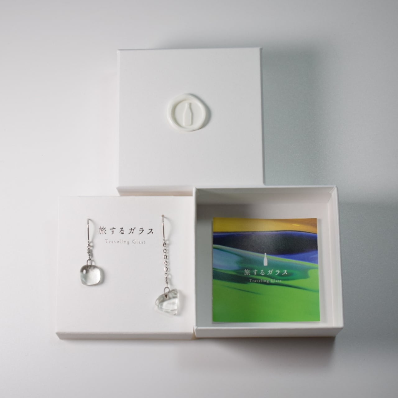 この〈透〉のガラスを、耳元でそっと揺れるピアスへと仕立てました。