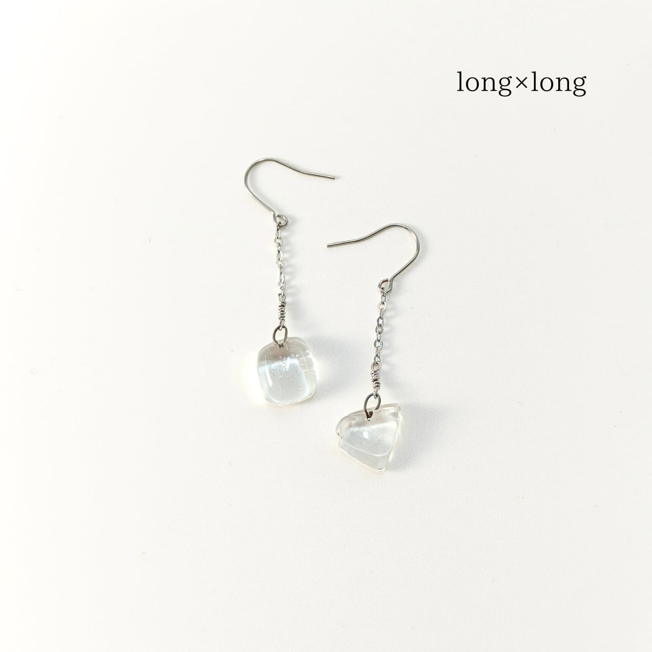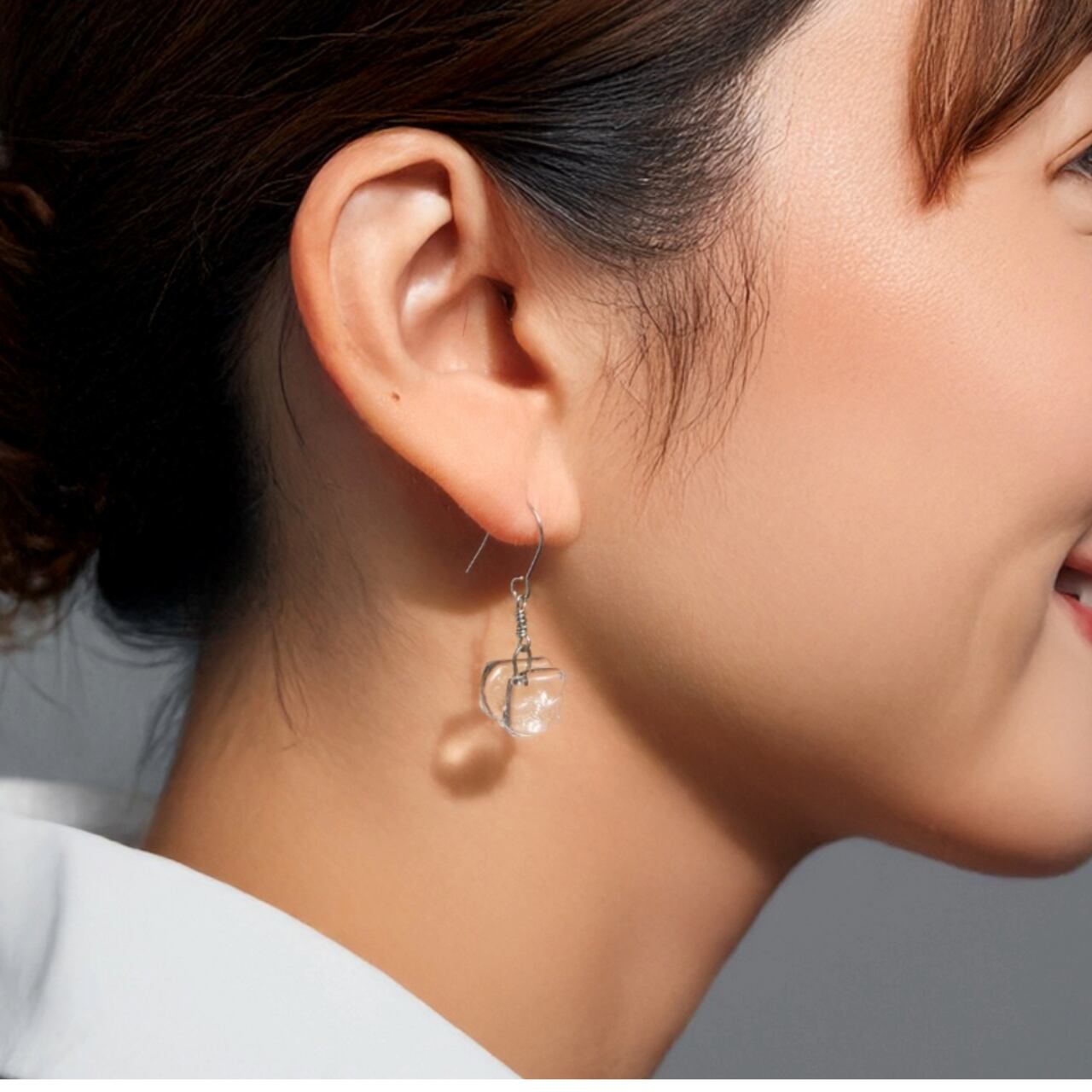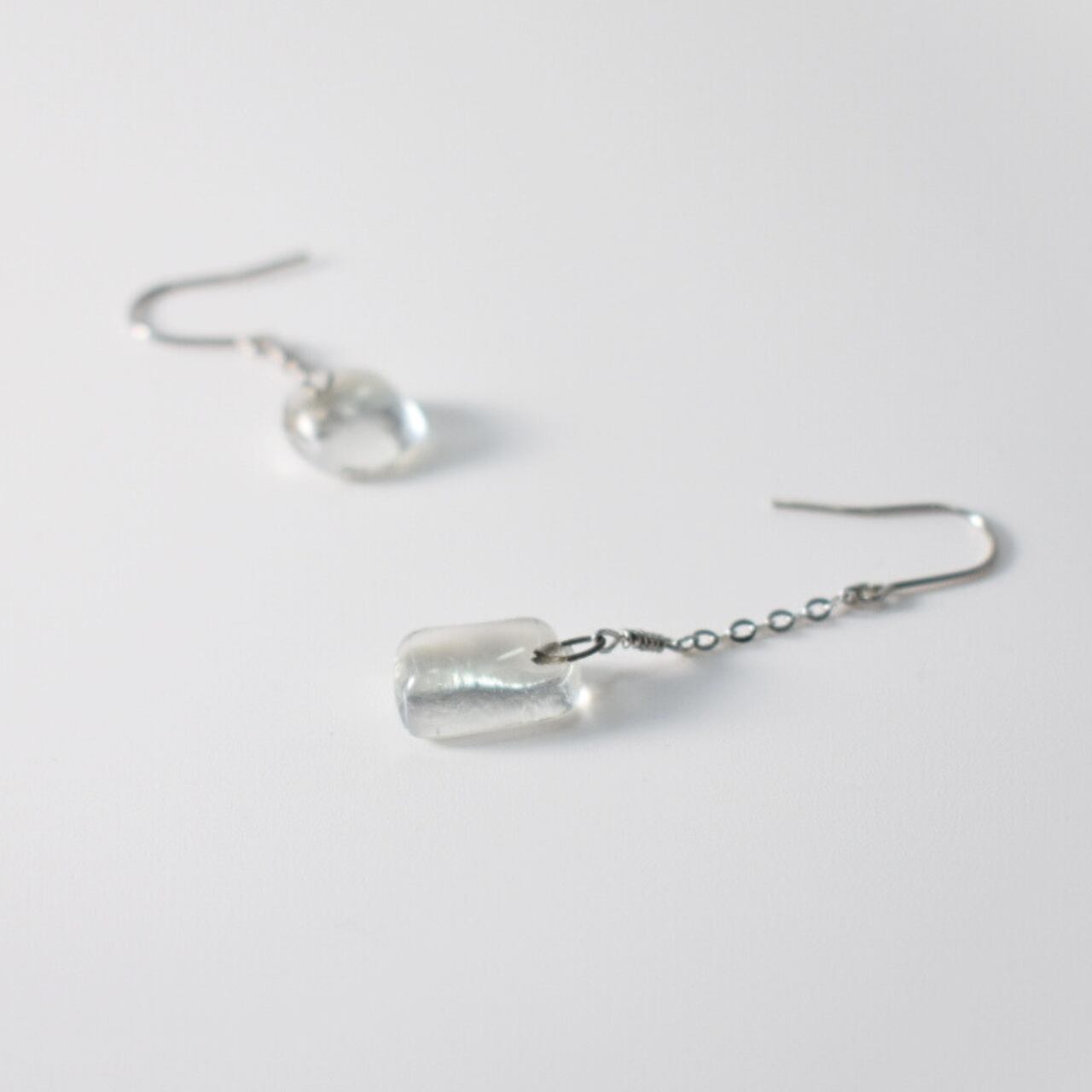 この〈透〉のガラスを、耳元でそっと揺れるピアスへと仕立てました。