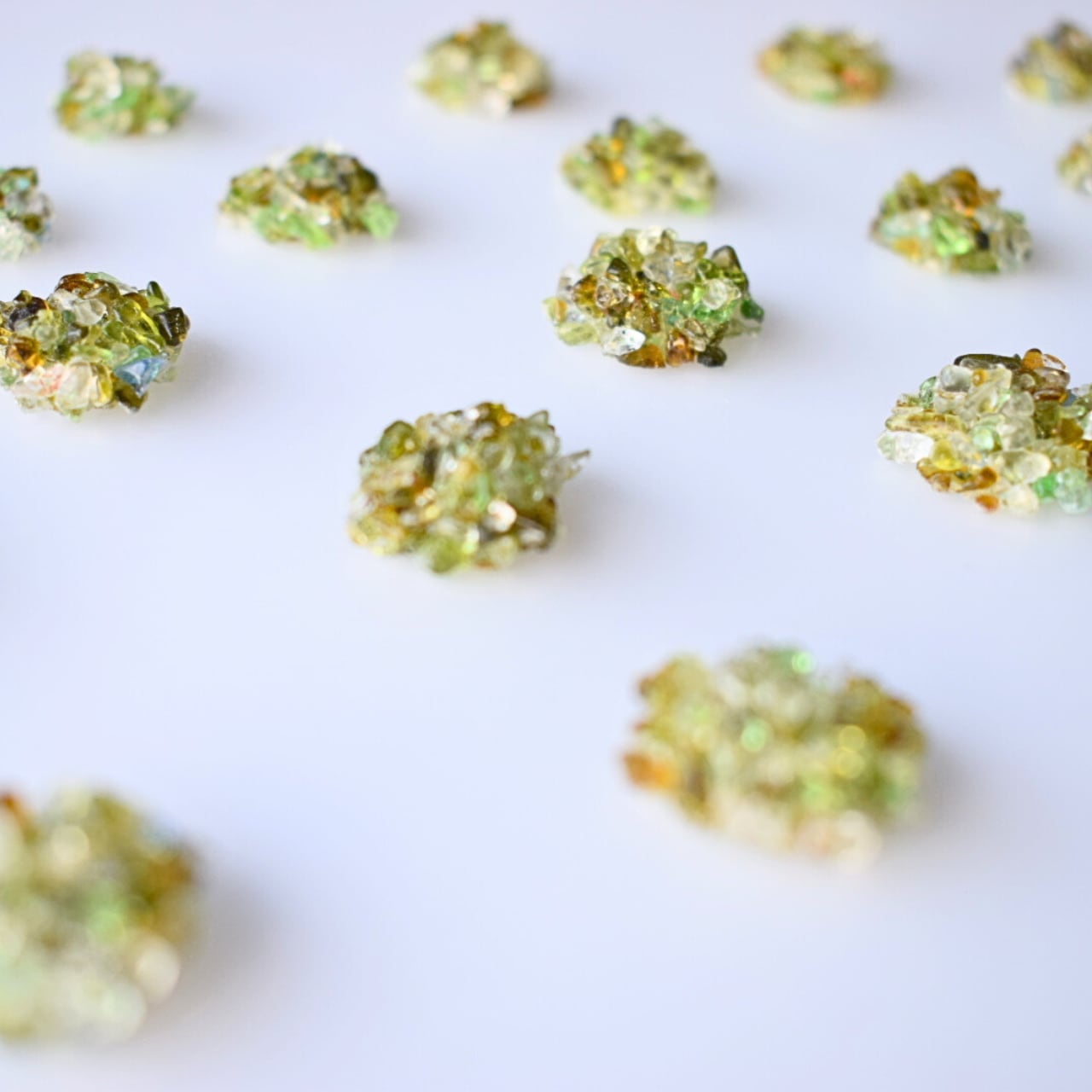 ※多彩なガラス粒が集まることで生まれる表面の凹凸は、本作品の特徴でもあります。繊細な質感ゆえ、触れる角度によってはわずかな刺激を感じられることがございますが、それも手仕事ならではの風合いとしてお楽しみいただければ幸いです。